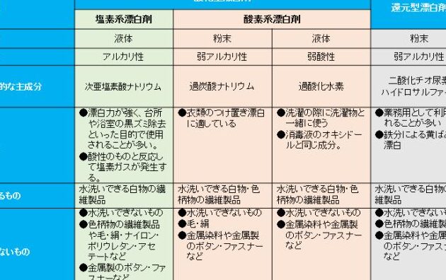 台所用漂白剤の種類と特徴